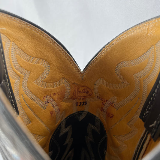 80s/90s Justin Grey and Black Snakeskin Cowboy Boots- M's 9, W's 10.5