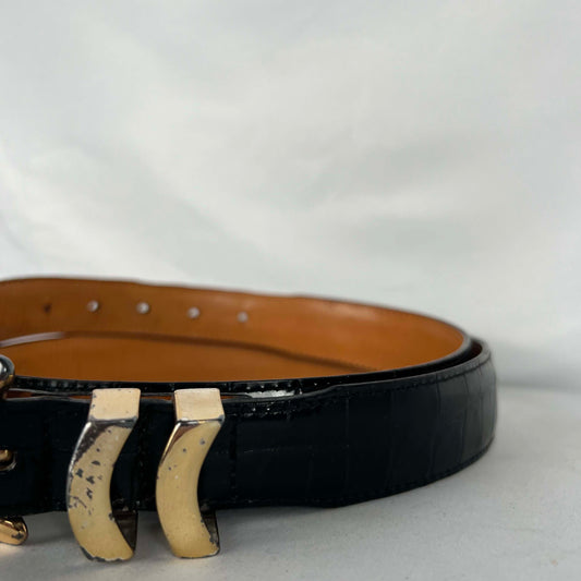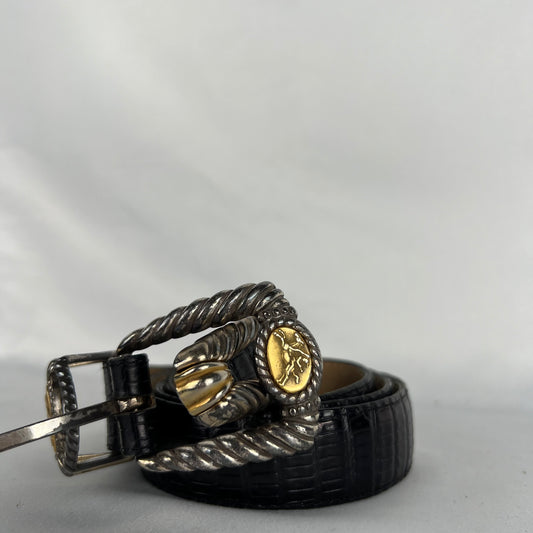 90s 3 Piece Pegasus Metal Black Detailed Leather Belt- 30"-32"
