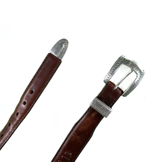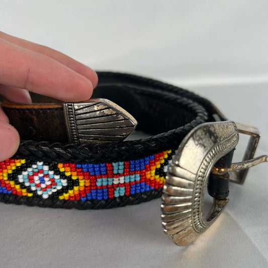 90s 3 Piece Metal L.L. Bean Beaded Leather Belt- 28"-30"