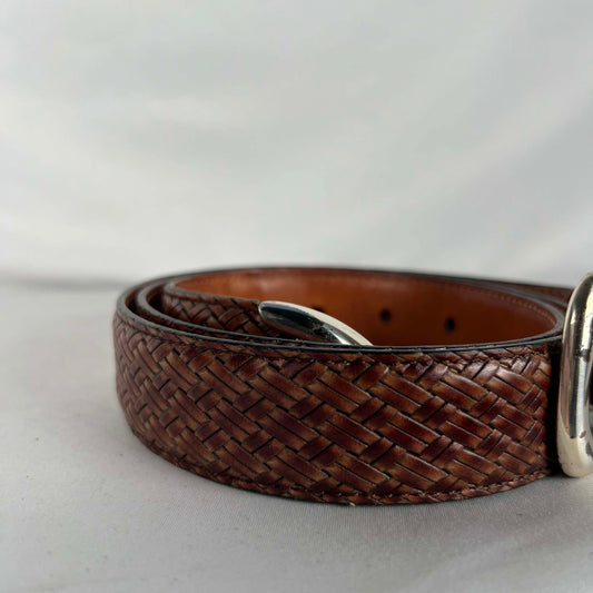 90s 3 Piece Metal Allen Edmonds Woven Brown Leather Belt- 32"-34"