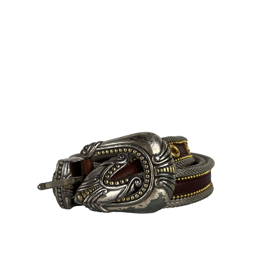 90s 3 Piece Metal Chainmail x Leather Belt- 32"-34"