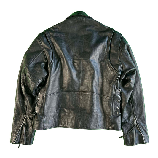 90s Barney's Black Leather Moto Biker Jacket- L