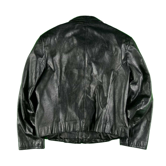 90s Black Wilson's Cafe Racer Leather Jacket- S