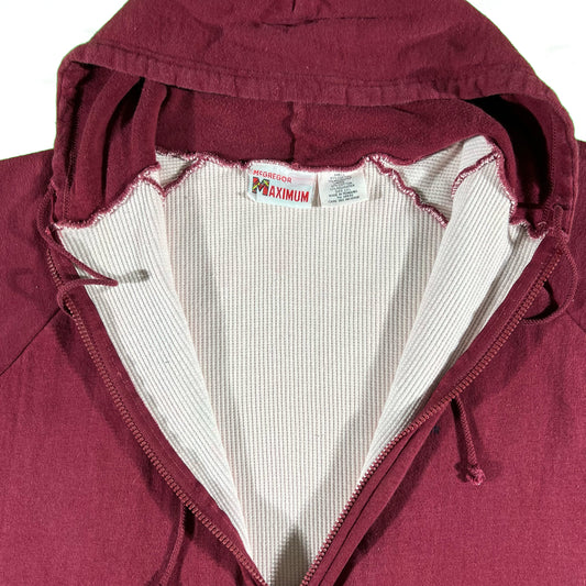 90s Burgundy Waffle Lined Zip Up Hoodie- XL