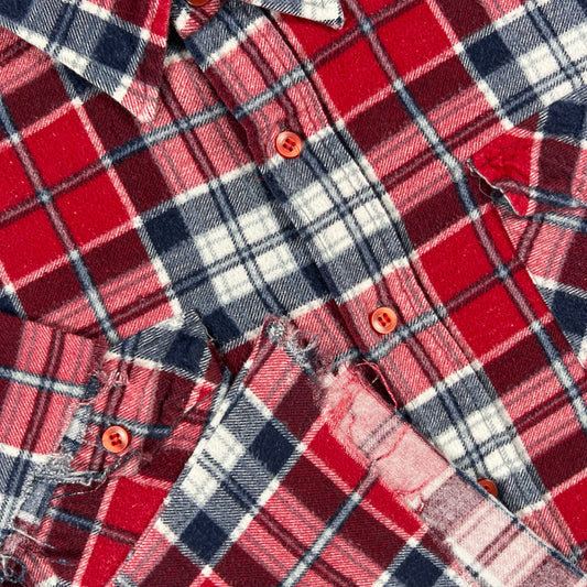 90s Cropped L/S Plaid Printed Flannel Shirt- S