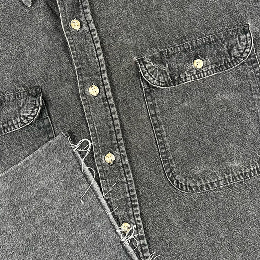90s Cropped L/S Sun Faded Black Roebucks Denim Shirt- XL