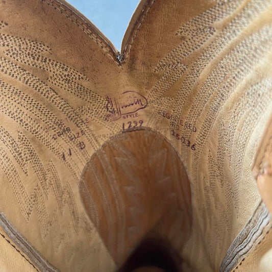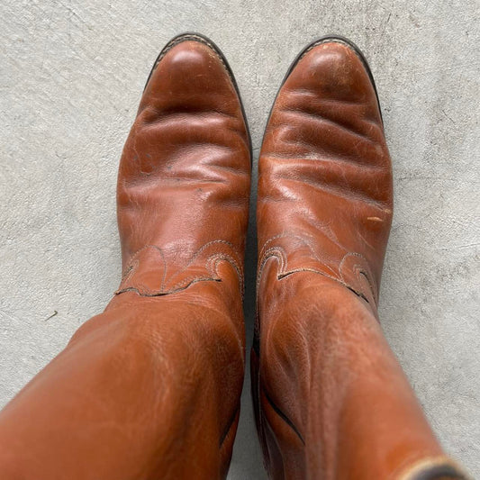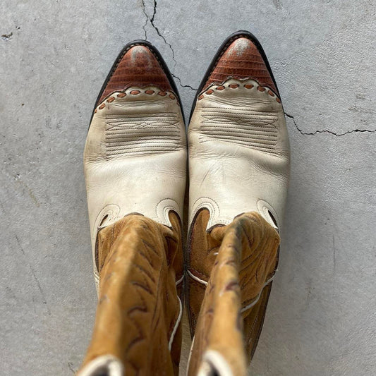 90s Cream/Tan Detailed Leather Cowboy Boots- M's 11, W's 12.5