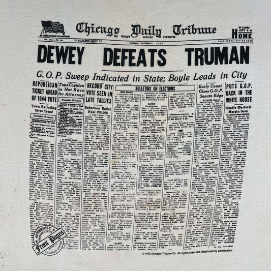 90s Dewey Defeats Truman Newspaper Tee- XL