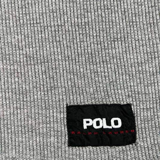 90s Distressed Grey Polo RL Henley Thermal- L