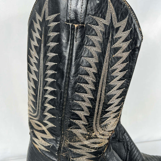 90s Detailed Black Leather Cowboy Boots- M's 10, W's 11.5