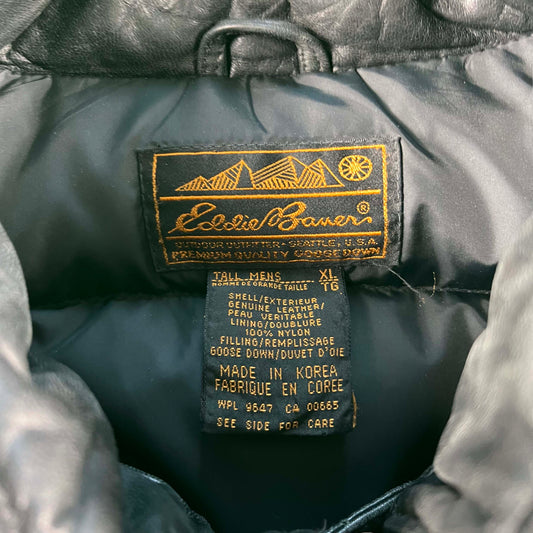 90s Eddie Bauer Black Leather Goose Down Puffer Jacket- XL