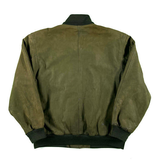 90s Eddie Bauer Olive Green Suede Leather Bomber Jacket- L