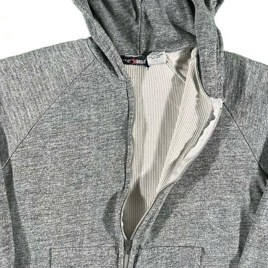 90s Grey Waffle Lined Zip Up Hoodie- M