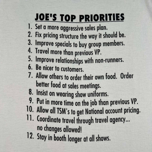 90s Joe's Top Priorities Tee- L