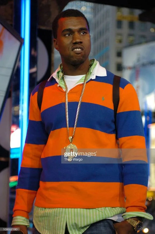 90s Kanye Striped Rugby Polo Shirt- S