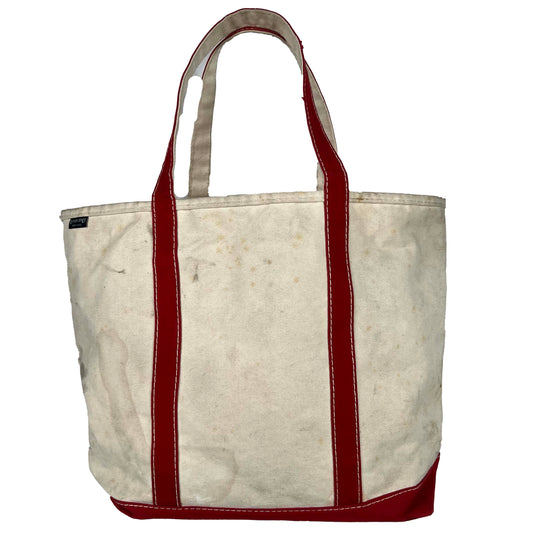 90s Lands' End Red/Cream Canvas Tote Bag- Large