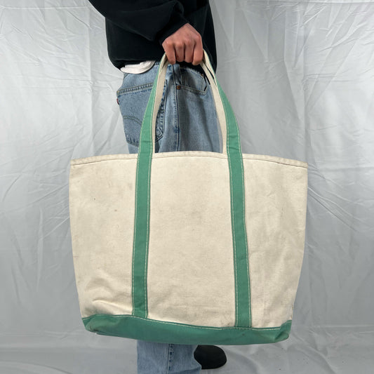 90s Lands' End Two Tone Canvas Tote Bag- Large