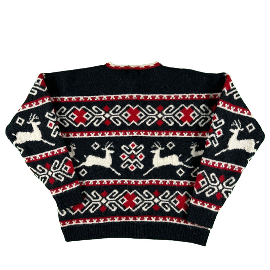 90s Lands' End Shetland Wool Deer Cardigan- L