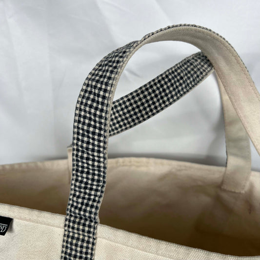 90s Lands End Gingham Plaid Canvas Tote Bag- Large