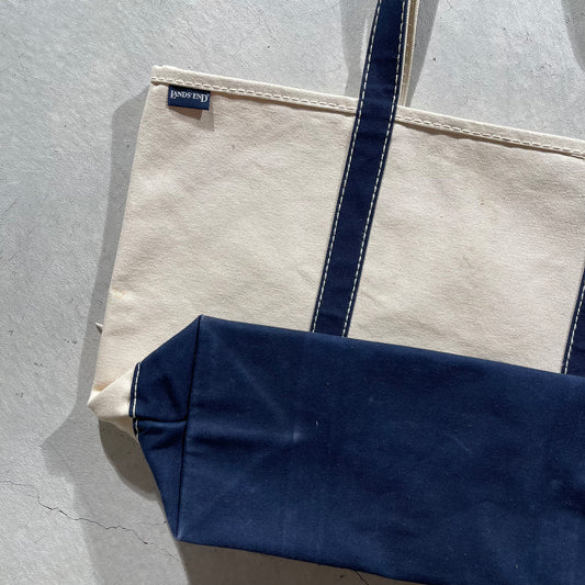90s Lands' End Two Tone Canvas z/u Tote Bag- Large
