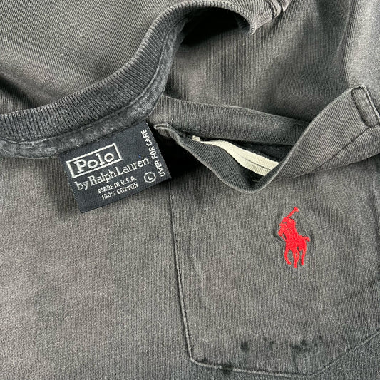 90s Polo Ralph Lauren Sun Faded Black Pocket Tee- L