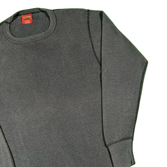 90s Sun Faded Black Waffle Knit Thermal- L