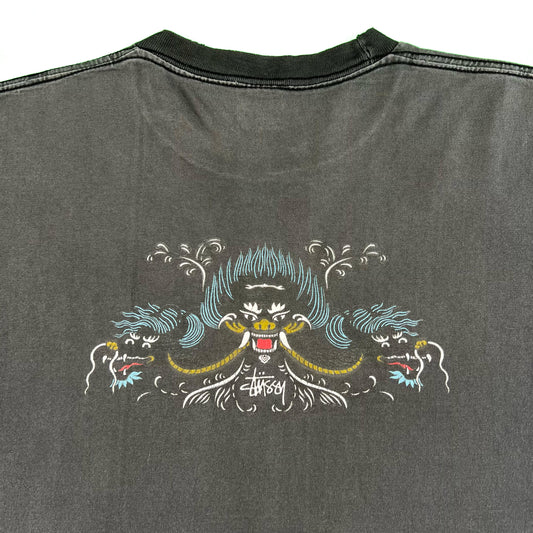 90s Sun Faded Black Stüssy Dragon Tee- XL
