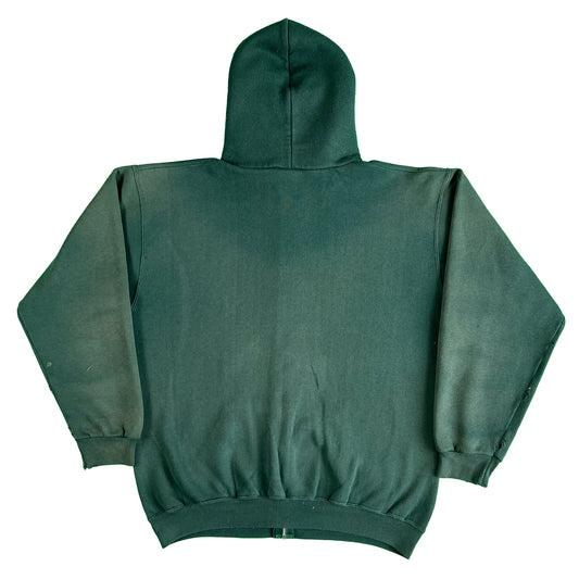 90s Sun Faded Forest Green Zip Up Hoodie- L