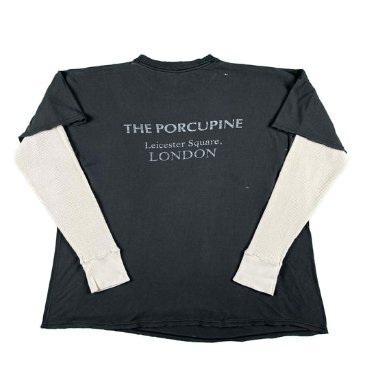 90s Thrashed 'The Porcupine' London Tee & Waffle Knit Thermal- XL