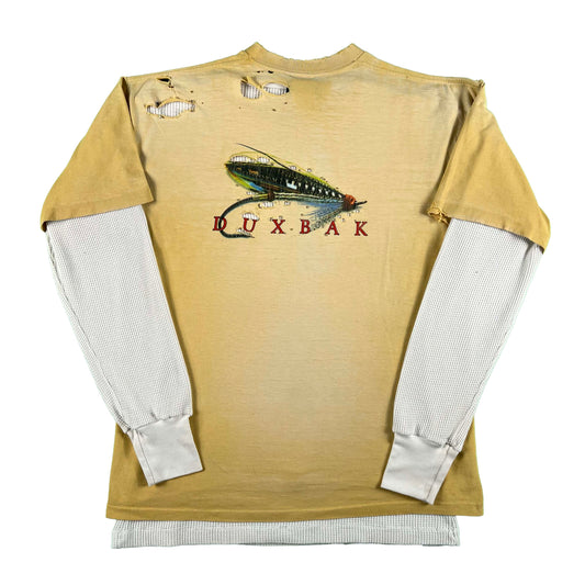 90s Thrashed Duxbak Fly Fishing Tee & Waffle Knit Thermal- L