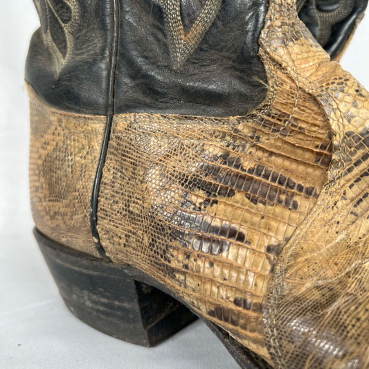 90s Two Tone Tony Lama Snakeskin Cowboy Boots- M's 11, W's 12.5