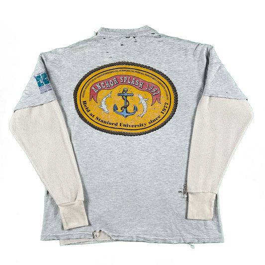 90s Thrashed Stanford Delta Gamma Tee & Waffle Knit Thermal- XL