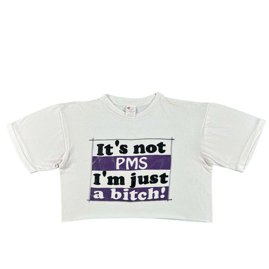 90s White 'It's not PMS I'm just a bitch!' Crop Tee- S