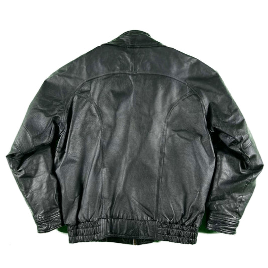 90s Wilsons Black Leather Blazer Collar Bomber Jacket- L