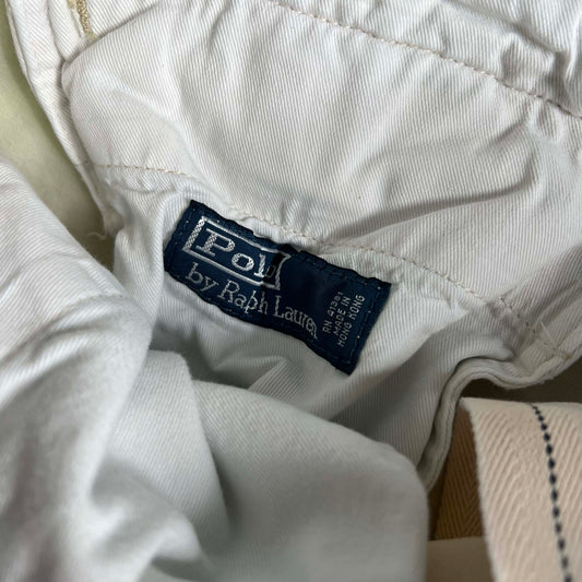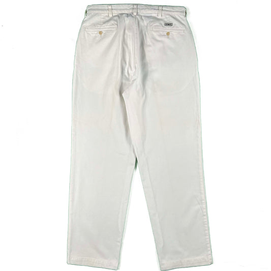 00s Polo RL White Pleated Cotton Chino Pants- 33x31