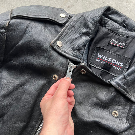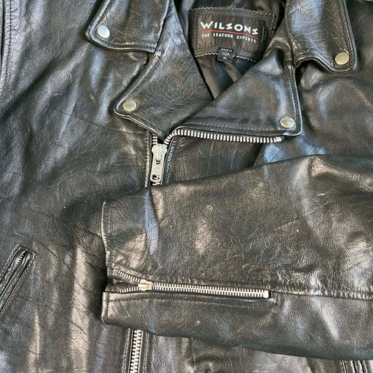 00s Wilsons Black Leather Moto Biker Jacket- L
