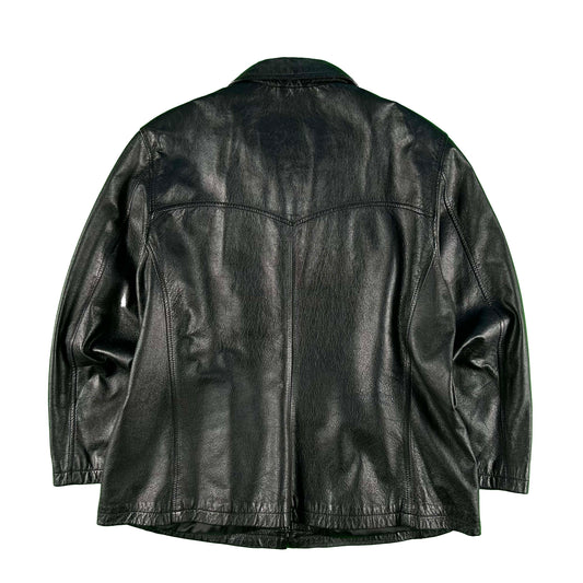 00s Wilsons Black Leather Moto Biker Jacket- XL