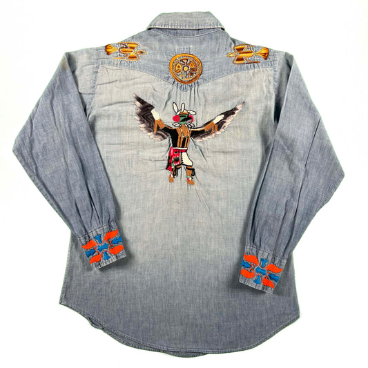 50s Lee Native Chain Stitched Pearl Snap Chambray Shirt- M