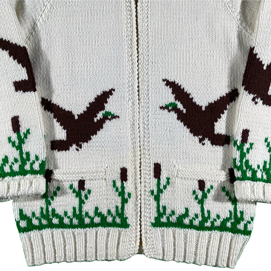 60s Faded Olive Green Shawl Neck Sweatshirt- M