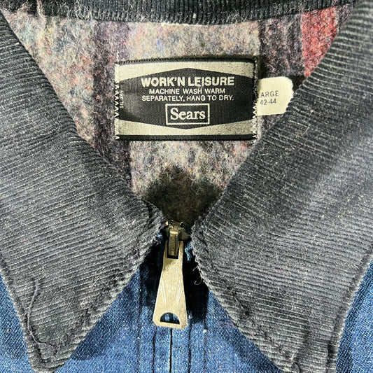 60s Sears Blanket Lined Zip Up Denim Jacket- XL