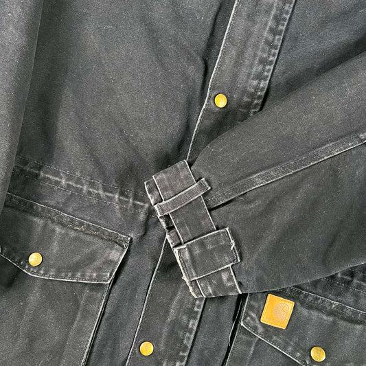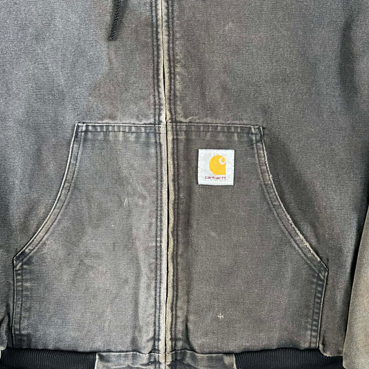 00s Carhartt Sun Faded Black/Grey Canvas Hooded Work Jacket- XL