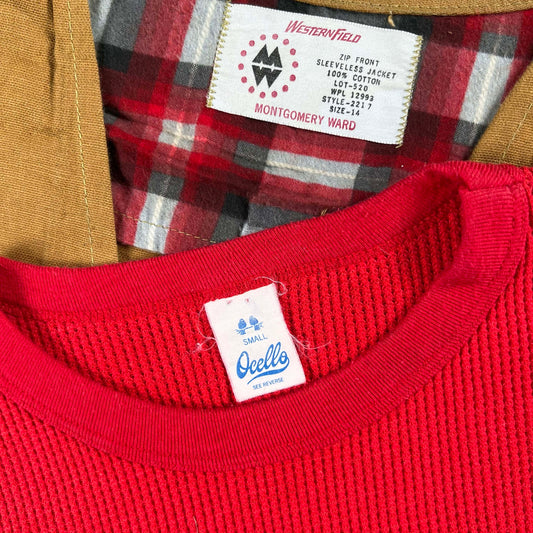 60s/70s Waffle Thermal and Zip Hunting Vest Combo- S
