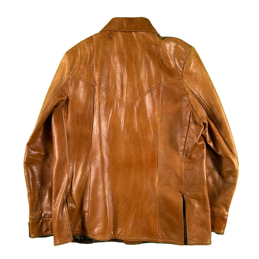 60s/70s Gorgeous Tan Leather Jacket- XL
