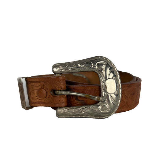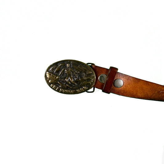 70s 'Ski Power USA' Buckle Leather Belt- 32"-36"