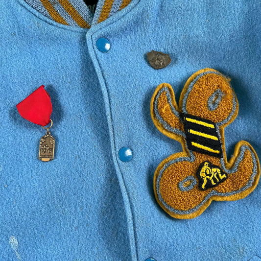 70s Baby Blue & Cream Wool Varsity Jacket- S
