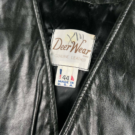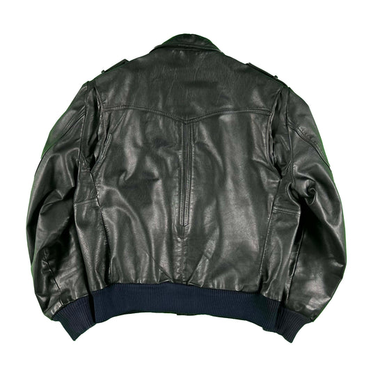 70s Black Leather Fleece Lined A2 Style Bomber Jacket- L
