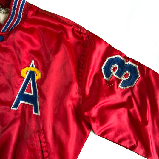 70s Boxy 'Angels' 33 Satin Bomber Jacket- L