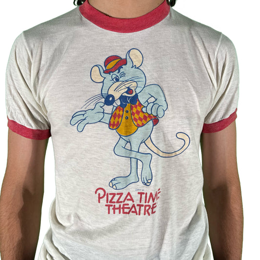 70s Chuck E. Cheese Pizza Time Theatre Ringer Tee- S