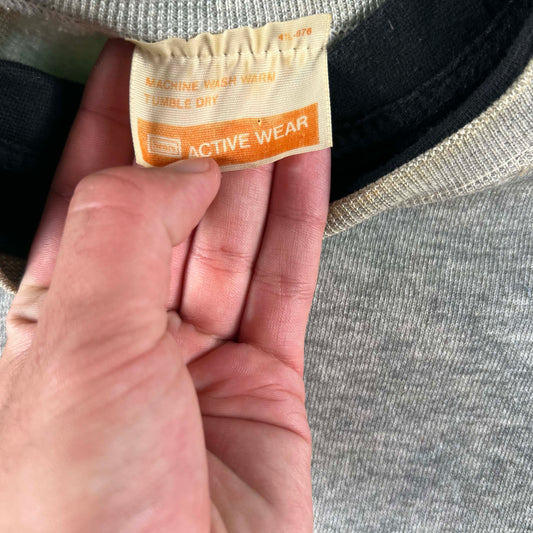 70s Chopped Grey Sweatshirt & Black Waffle Knit Thermal- XL