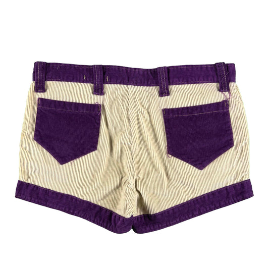 70s Cream & Purple Corduroy Mini Shorts- 32x1.5